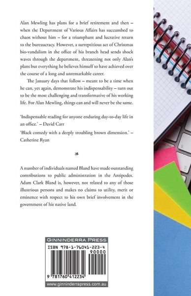Alan Mewling has plans for a brief retirement and then - when the Department of Various Affairs has succumbed to chaos without him - for a triumphant and lucrative return to the bureaucracy. However, a surreptitious act of Christmas bio-vandalism in the office of his branch head sends shock waves through the department, threatening not only Alan's plans but everything he believes himself to have achieved over the course of a long and unremarkable career. The January days that follow - meant to be a time when he can, yet again, demonstrate his indispensability - turn out to be the most challenging and transformative of his working life. For Alan Mewling, things can and will never be the same. 'Indispensable reading for anyone enduring day-to-day life in an office.' - David Carr 'Black comedy with a deeply troubling brown dimension.' - Catherine Ryan