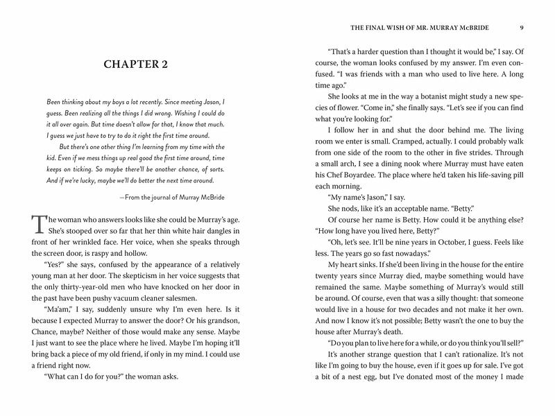 Jason Cashman has reached the goal he spent the last twenty years seeking: raising a million dollars for charity. But instead of feeling content, he now feels empty. What comes next? When he meets Alexandra Lopez--a determined ten-year-old girl facing deportation and uncertainty--he is inspired by his old friend, Murray McBride, to help her fulfill five wishes before she must leave. They set out to check off as many of her wishes as possible, but when Jason's transplanted heart begins to fail, he must choose between his obligations to the past and his hope for a future.