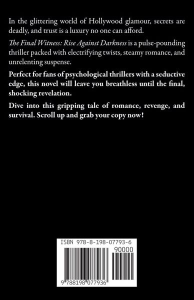In the glittering world of Hollywood glamour, secrets are deadly, and trust is a luxury no one can afford. The Final Witness: Rise Against Darkness is a pulse-pounding thriller packed with electrifying twists, steamy romance, and unrelenting suspense. Perfect for fans of psychological thrillers with a seductive edge, this novel will leave you breathless until the final, shocking revelation. Dive into this gripping tale of romance, revenge, and survival. Scroll up and grab your copy now!