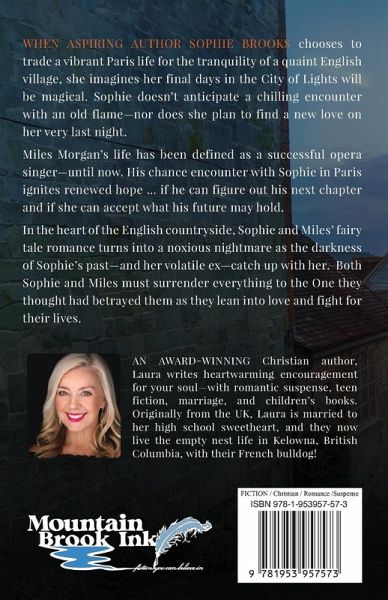 When aspiring author Sophie Brooks chooses to trade a vibrant Paris life for the tranquility of a quaint English village, she imagines her final days in the City of Lights will be magical. Sophie doesn't anticipate a chilling encounter with an old flame-nor does she plan to find a new love on her very last night. Miles Morgan's life has been defined as a successful opera singer-until now. His chance encounter with Sophie in Paris ignites renewed hope ... if he can figure out his next chapter and if she can accept what his future may hold. In the heart of the English countryside, Sophie and Miles' fairy tale romance turns into a noxious nightmare as the darkness of Sophie's past-and her volatile ex-catch up with her. Both Sophie and Miles must surrender everything to the One they thought had betrayed them as they lean into love and fight for their lives.