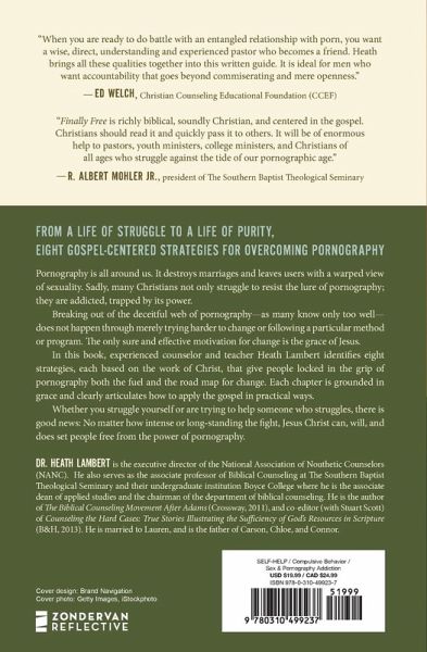 Eight gospel-centered strategies for overcoming the lure of pornography and finally breaking free. This book is not about pornography. You won't find graphic depictions about the porn industry, the catastrophic effects it has on individuals and relationships, or how to think differently about porn. If you're reading this book, you probably have some understanding of those things already--the last thing you need is to be subjected to that kind of detail...again. Finally Free is about hope. It's about discovering the freeing power available to those who trust in Jesus Christ, who can, will, and does set people free from the power of pornography. Dr. Heath Lambert, a leader in the biblical counseling movement, has organized this book around eight clear and practical tactics you can wield to make it easier to flee lust and temptation and shelter in the protection of God's grace. Each chapter: Clearly demonstrates how the gospel applies to the fight against sexual temptation. Lays out relevant methods for leaning on Christ's strength--both in advance of and in moments of temptation. Explains how Jesus can move readers from a life of struggle to a life of purity. If you've struggled personally against the powerful draw of pornography, or if you've ever tried to help someone fighting this battle, you know how hard it is to break its bonds. But there is good news: no matter how intense or long-standing the struggle, Jesus Christ has the power to free people from the enslaving power of pornography. The Gospel has a power that works practically in the lives of those who seek to imitate Christ--and you can learn how to live into that power.