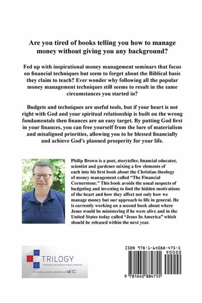 Are you tired of books telling you how to manage money without giving you any background? Fed up with inspirational money management seminars that focus on financial techniques but seem to forget about the Biblical basis they claim to teach? Ever wonder why following all the popular money management techniques still seems to result in the same circumstances you started in? Budgets and techniques are useful tools, but if your heart is not right with God and your spiritual relationship is built on the wrong fundamentals then finances are an easy target. By putting God first in your finances, you can free yourself from the lure of materialism and misaligned priorities, allowing you to be blessed financially and achieve God's planned prosperity for your life.