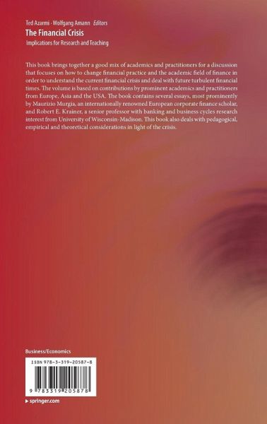 This book brings together a good mix of academics and practitioners for a discussion that focuses on how to change financial practice and the academic field of finance in order to understand the current financial crisis and deal with future turbulent financial times. The volume is based on contributions by prominent academics and practitioners from Europe, Asia and the USA. The book contains several essays, most prominently by Maurizio Murgia, an internationally renowned European corporate finance scholar, and Robert E. Krainer, a senior professor with banking and business cycles research interest from University of Wisconsin-Madison. This book also deals with pedagogical, empirical and theoretical considerations in light of the crisis.
