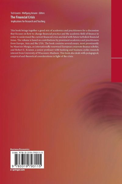 This book brings together a good mix of academics and practitioners for a discussion that focuses on how to change financial practice and the academic field of finance in order to understand the current financial crisis and deal with future turbulent financial times. The volume is based on contributions by prominent academics and practitioners from Europe, Asia and the USA. The book contains several essays, most prominently by Maurizio Murgia, an internationally renowned European corporate finance scholar, and Robert E. Krainer, a senior professor with banking and business cycles research interest from University of Wisconsin-Madison. This book also deals with pedagogical, empirical and theoretical considerations in light of the crisis.
