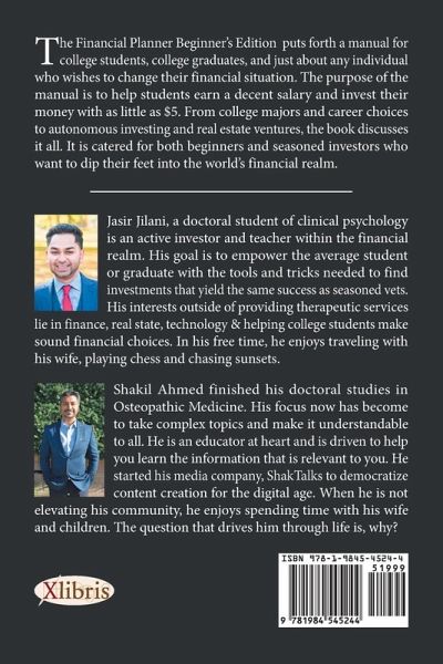 The Financial Planner puts forth a manual for college students, college graduates, and just about any individual who wish to change their financial situation. The purpose of the manual is to help students earn a decent salary and invest their money with as little as five dollars. From college majors and career choices to autonomous investing and real estate ventures, the book discusses it all. It is catered for both beginners and seasoned investors who want to dip their feet into the world's financial freedom.