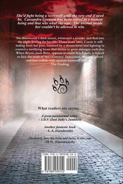 She discovered a dark secret, witnessed a murder and fled fearing for her life. Three years later, Cassie is hiding from her past, haunted by a dream lover and fighting to control a terrifying beast that seems to grow stronger each day. When Bryan, pack Beta, appears to claim her, Cassie is forced to face the truth of her existence. Innocence, betrayal, greed and love collide in The Finding. Third book in The Law of the Lycans series by Nicky Charles.