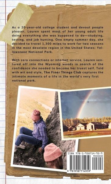 As a 20-year-old college student and devout people pleaser, Lauren spent most of her young adult life doing everything she was supposed to do-studying, testing, and job hunting. One empty summer day, she decided to travel 1,300 miles to work for two seasons in the most desolate region in the United States: Yellowstone National Park. With zero connections or internet service, Lauren ventured off into the Wyoming woods in search of the confidence she needed to become her truest self. Told with wit and style, The Finer Things Club captures the intimate moments of a life in the world's very first national park.