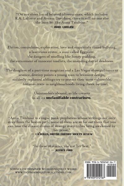 The Finest Ass in the Universe is the second story collection by Anna Tambour. Tambour is an Aurealis Award winner and a World Fantasy Award nominee. The Finest Ass in the Universe collects 26 incredible fantastic visions. Five stories are original to this collection. Elation, compulsion, exploration, love and exquisitely timed bullying, a lascivious oyster, a man called Eggplant, the dangers of smelling like honey pudding, the enticement of innocent toadlets, the unending day of deadness. The daughter of a part-time magician and a Las Vegas showgirl turns to science. Destiny points a young man to brassiere design. Suddenly orphaned siblings try to protect their most vulnerable. Fortunes craze in neighbourhoods living cheek-by-jowl. Unintendeds abound, as life cavorts in all its unclassifiable contrariness.