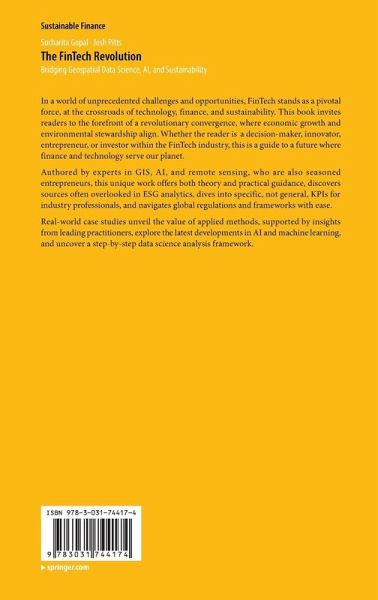 In a world of unprecedented challenges and opportunities, Fintech stands as a pivotal force, at the crossroads of technology, finance, and sustainability. This book invites readers to the forefront of a revolutionary convergence, where economic growth and environmental stewardship align. Whether the reader is a decision-maker, innovator, entrepreneur, or investor within the Fintech industry, this is a guide to a future where finance and technology serve our planet. Authored by experts in GIS, AI, and remote sensing, who are also seasoned entrepreneurs, this unique work offers both theory…mehr