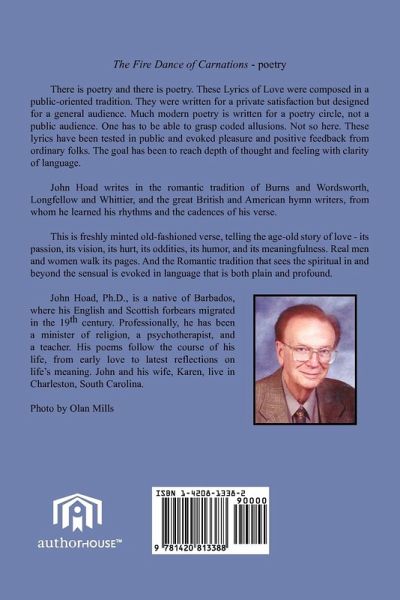 There is poetry and there is poetry. These Lyrics of Love were composed in a public-oriented tradition. They were written for a private satisfaction but designed for a general audience. Much modern poetry is written for a poetry circle, not a public audience. One has to be able to grasp coded allusions. Not so here. These lyrics have been tested in public and evoked pleasure and positive feedback from ordinary folks. The goal has been to reach depth of thought and feeling with clarity of language. John Hoad writes in the romantic tradition of William Wordsworth and Robert Burns and the great British and American hymn writers, from whom he learned his rhymes and rhythms and the cadences of his verse. This is freshly minted old-fashioned verse, telling the age-old story of love - its passion, its vision, its hurt, its oddities, its humor, and its meaningfulness. Real men and women walk its pages. And the Romantic tradition that sees the soul in and beyond the sensual is evoked in language that is both plain and profound.