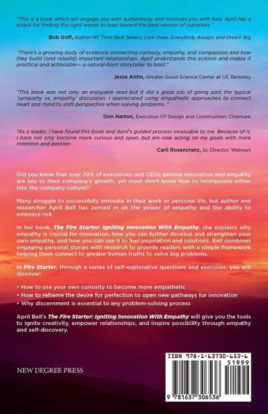 Did you know that over 70% of executives and CEO's believe innovation and empathy are key to their company's growth, yet most don't know how to incorporate either into the company culture? Many struggle to successfully innovate in their work or personal life, but author and researcher April Bell has zeroed in on the power of empathy and the ability to embrace risk. In her book, The Fire Starter: Igniting Innovation With Empathy, she explains why empathy is crucial for innovation, how you can further develop and strengthen your own empathy, and how you can use it to fuel inspiration and solutions. Bell combines engaging personal stories with research to provide readers with a simple framework helping them connect to greater human truths to solve big problems. In FireStarter, through a series of self-explorative questions and exercises, you will discover:How to use your own curiosity to become more empathetic How to reframe the desire for perfection to open new pathways for innovation Why discernment is essential to any problem solving process April Bell's The Fire Starter: Igniting Innovation With Empathy will give you the tools to ignite creativity, empower relationships, and inspire possibility through empathy and self-discovery.