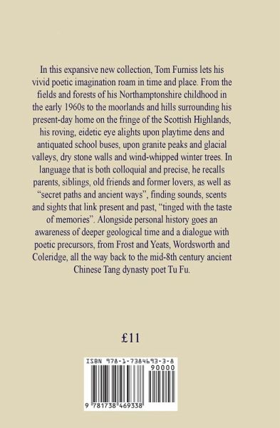 In this expansive new collection, Tom Furniss lets his vivid poetic imagination roam in time and place. From the fields and forests of his Northamptonshire childhood in the early 1960s to the moorlands and hills surrounding his present-day home on the fringe of the Scottish Highlands, his roving, eidetic eye alights upon playtime dens and antiquated school buses, upon granite peaks and glacial valleys, dry stone walls and wind-whipped winter trees. In language that is both colloquial and precise, he recalls parents, siblings, old friends and former lovers, as well as "secret paths and ancient ways", finding sounds, scents and sights that link present and past, "tinged with the taste of memories". Alongside personal history goes an awareness of deeper geological time and a dialogue with poetic precursors, from Frost and Yeats, Wordsworth and Coleridge, all the way back to the mid-8th century ancient Chinese Tang dynasty poet Tu Fu.