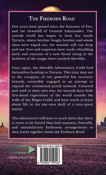 Five years have passed since the Summer of Fire, and the downfall of General Salamander. The outside world has begun to heal, but inside Tartaria, where brother fought brother and whole clans were wiped out, the wounds still run deep and raw. Fear and suspicion have made rebuilding hard, and rumours of a new threat rising in the shadows of the steppe have reached Aberddu. Once again, the Aberddu Adventurers Guild find themselves heading to Tartaria. This time they are in the company of two powerful but eccentric wizards, ostensibly engaged in an attempt to expand the continental portal network. Cosseted and used to their own way, the wizards have little first-hand experience of the world outside the walls of the Mages Guild, and have much to learn about life in the war-torn shell of a once-great nation. The adventurers will have to teach them that there is more to be feared than bad manners, fisticuffs, and unsatisfactory bathroom arrangements as they travel together down the Fireborn Road.