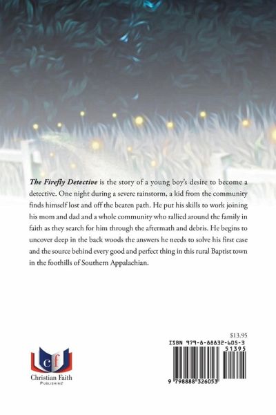 The Firefly Detective is the story of a young boy's desire to become a detective. One night during a severe rainstorm, a kid from the community finds himself lost and off the beaten path. He put his skills to work joining his mom and dad and a whole community who rallied around the family in faith as they search for him through the aftermath and debris. He begins to uncover deep in the back woods the answers he needs to solve his first case and the source behind every good and perfect thing in this rural Baptist town in the foothills of Southern Appalachian.