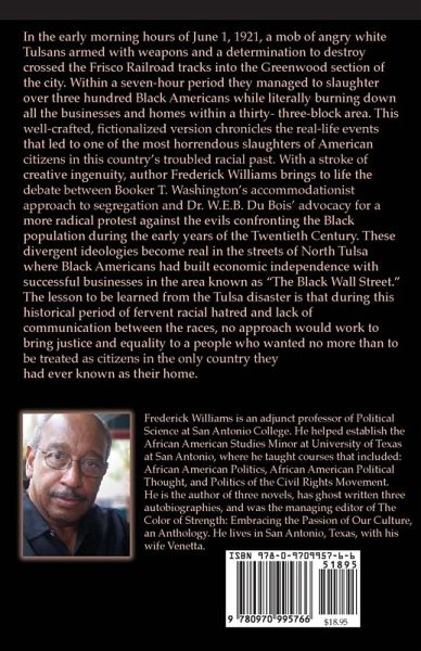 In the early morning hours of June 1, 1921, hordes of angry whites in Tulsa, Oklahoma, crossed the Frisco railroad tracks into the Greenwood section known as Black Wall Street, armed with weapons and a determination to destroy. Within a seven hour period, they managed to slaughter over three hundred African Americans, while literally burning down all the businesses and homes within a 33 block radius. This well-written, fictionalized version chronicles the events that led to one of the most horrendous slaughters of American citizens in this country's troubled racial past.