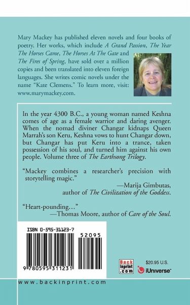 In the year 4300 B.C., a young woman named Keshna comes of age as a female warrior and daring avenger. When the nomad diviner Changar kidnaps Queen Marrah's son Keru, Keshna vows to hunt Changar down, but Changar has put Keru into a trance, taken possession of his soul, and turned him against his own people. Volume three of The Earthsong Trilogy. "Mackey combines a researcher's precision with storytelling magic." --Marija Gimbutas, author of The Civilization of the Goddess. "Heart-pounding..." --Thomas Moore, author of Care of the Soul.