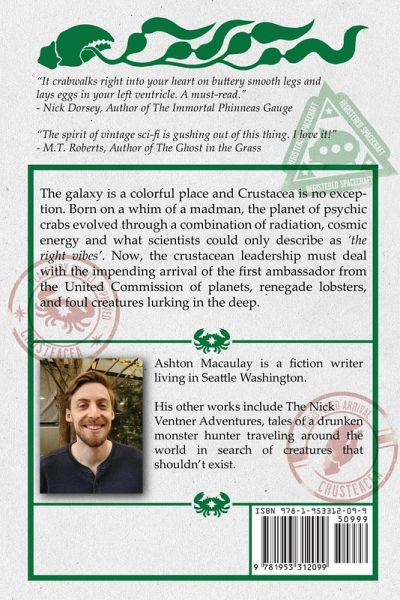 The galaxy is a colorful place and Crustacea is no exception. Born on a whim of a madman, the planet of psychic crabs evolved through a combination of radiation, cosmic energy and what scientists could only describe as 'the right vibes'. Now, the crustacean leadership must deal with the impending arrival of the first ambassador from the United Commission of planets, renegade lobsters, and foul creatures lurking in the deep.