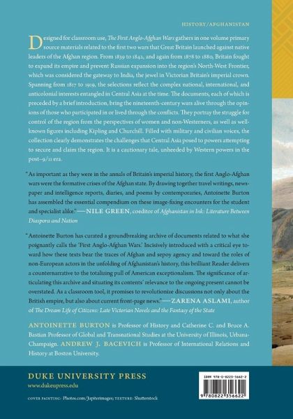 Designed for classroom use, The First Anglo-Afghan Wars gathers in one volume primary source materials related to the first two wars that Great Britain launched against native leaders of the Afghan region. From 1839 to 1842, and again from 1878 to 1880, Britain fought to expand its empire and prevent Russian expansion into the region's northwest frontier, which was considered the gateway to India, the jewel in Victorian Britain's imperial crown. Spanning from 1817 to 1919, the selections reflect the complex national, international, and anticolonial interests entangled in Central Asia at the time. The documents, each of which is preceded by a brief introduction, bring the nineteenth-century wars alive through the opinions of those who participated in or lived through the conflicts. They portray the struggle for control of the region from the perspectives of women and non-Westerners, as well as well-known figures including Kipling and Churchill. Filled with military and civilian voices, the collection clearly demonstrates the challenges that Central Asia posed to powers attempting to secure and claim the region. It is a cautionary tale, unheeded by Western powers in the post-9/11 era.