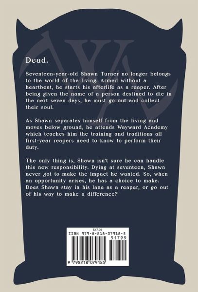 Dead. Seventeen-year-old Shawn Turner no longer belongs to the world of the living. Armed without a heartbeat, he starts his afterlife as a reaper. After being given the name of a person destined to die in the next seven days, he must go out and collect their soul. As Shawn separates himself from the living and moves below ground, he attends Wayward Academy which teaches him the training and traditions all first-year reapers need to know to perform their duty. The only thing is, Shawn isn't sure he can handle this new responsibility. Dying at seventeen, Shawn never got to make the impact he wanted. So, when an opportunity arises, he has a choice to make. Does Shawn stay in his lane as a reaper, or go out of his way to make a difference?