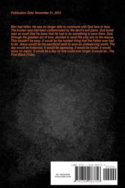 Man had fallen. He was no longer able to commune with God face to face. The human race had been contaminated by the devil's evil plans. God loved man so much that He knew that He had to do something to save them. God, through the greatest act of love, decided to send His only son to the rescue. This wouldn't be easy. It would be the hardest thing that the Father ever had to do. Jesus would be the sacrificial lamb to save an undeserving world. The day would be historical. It would be agonizing. It would be brutal. It would show no mercy. It would be a day no one could ever forget. It would be...The First Black Friday.