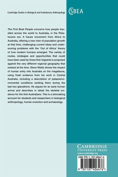 The First Boat People concerns how people travelled across the world to Australia in the Pleistocene. It traces movement from Africa to Australia, offering a new view of population growth at that time, challenging current ideas, and underscoring problems with the 'Out of Africa' theory of how modern humans emerged. The variety of routes, strategies and opportunities that could have been used by those first migrants is proposed against the very different regional geography that existed at that time. Steve Webb shows the impact of human entry into Australia on the megafauna using fresh evidence from his work in Central Australia, including a description of palaeoenvironmental conditions existing there during the last two glaciations. He argues for an early human arrival and describes in detail the skeletal evidence for the first Australians. This is a stimulating account for students and researchers in biological anthropology, human evolution and archaeology.
