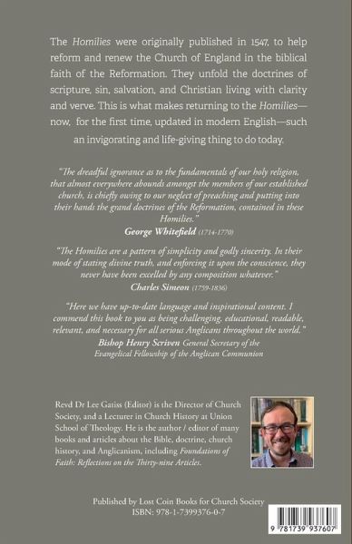 The Homilies were originally published in 1547, to help reform and renew the Church of England in the biblical faith of the Reformation. This series of sermons was written to enable often rather uneducated ministers, teach and explain the essence of the Christian faith from the pulpits of the land. They unfold the doctrines of scripture, sin, salvation, and Christian living with clarity and verve. This is what makes returning to the Homilies-now, for the first time, updated in modern English-such an invigorating and life-giving thing to do today.