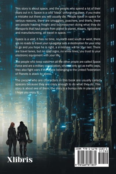 This story is about space, and the people who spend a lot of their years out in it. Space is a cold 'black' unforgiving place, if you make a mistake out there you will usually die. People travel in space for various reasons, there are smugglers, poachers, and thiefs, there are people hauling freight and businessmen doing what they do transports that haul people from planet to planet, miners, Agriculture and manufactureing, all travel in space. Space is a void, it has no time, no north east south or west, there are no roads to travel your navagator sets a destination for your ship to go and you hope he is right, a a mistake will be your last. There are travel lanes, but no road signs, no white lines, you trust to your electronic equipment with your life. The people who keep watch on all the other prople are called Space Force and are a military organization, who not only act as traffic cops, they also fight wars if the space belonging to the United Federation of Planets is atack by aliens. The people who are characters in this book are usually called spacers because they are crazy enough to do what they do. This story is about one of them, the story is a bumpy ride in places and I hope you enjoy it.