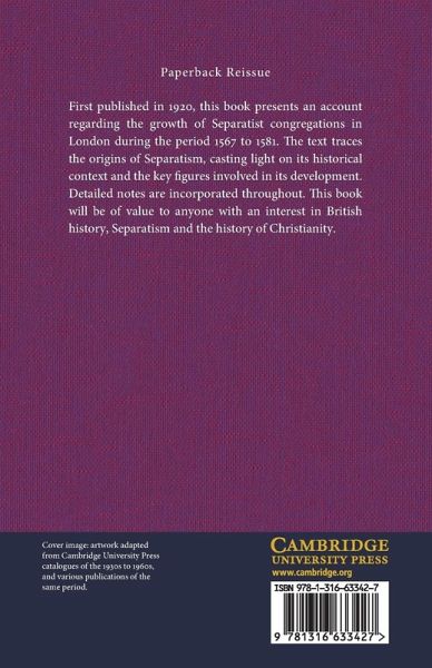 First published in 1920, this book presents an account regarding the growth of Separatist congregations in London during the period from 1567 to 1581. The text traces the origins of Separatism, casting light on its historical context and the key figures involved in its development. Detailed notes are incorporated throughout. This book will be of value to anyone with an interest in British history, Separatism and the history of Christianity.
