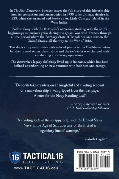Spencer traces the full story of this historic ship from its conception and construction in 1799 to its ultimate demise in 1823, when she was stranded and broke up on Little Curacao Island in the West Indies. "History enthusiasts and those with a naval or military background are sure to be immersed in the untold story of this famous ship - a history that includes wars and conflicts in the Caribbean and the Mediterranean and colorful commanders," said Spencer, a life-long history enthusiast. "I've combined a compelling narrative with ship images, battle scenes, portraits of captains and their commodores, along with maps to draw readers into the story." ¿¿Spencer's narrative follows the ship's beginnings as tensions grew with France during the Quasi-War with France through a time period where the Barbary State of Tripoli declared war on the United States to the War of 1812. The story culminates with tales of piracy in the Caribbean when bandits preyed on merchant ships, and the Enterprize was charged with conducting anti-piracy operations. The word "enterprise," or "enterprize as it was generally spelled long ago, has been defined as embarking on new ventures with boldness and energy. "Deborah's account is such a great read and fills a huge void in the historical record of a ship that is pivotal to our country's story," said Chris Schafer, CEO at Tactical 16 Publishing. "Get ready to be thrilled by her detailed descriptions of the battles waged and the commanders who fought so bravely at sea." Spencer, who lives in Florida and is the chief technology officer at an advertising technology company, says she has always had a particular fascination for ships name Enterprise. She is originally from Huntsville, Alabama. Tactical 16 Publishing specializes in working with authors in the armed forces, police, fire, and rescue communities. To learn more, Go to Tactical 16 Publishing on YouTube or go our Facebook page at Tactical 16 Publishing. Sign up for Email Updates from Tactical 16! Join our email list to receive the latest news and updates from our team. We will even inform you about upcoming releases before they go live! Visit our website at https://tactical16.com/ to be on our list.