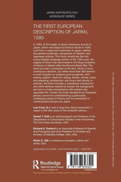 In 1585, at the height of Jesuit missionary activity in Japan, which was begun by Francis Xavier in 1549, Luis Frois, a long-time missionary in Japan, drafted the earliest systematic comparison of Western and Japanese cultures. This book constitutes the first critical English-language edition of the 1585 work, the original of which was discovered in the Royal Academy of History in Madrid after the Second World War. The book provides a translation of the text, which is not a continuous narrative, but rather more than 600 distichs or brief couplets on subjects such as gender, child rearing, religion, medicine, eating, horses, writing, ships and seafaring, architecture, and music and drama. In addition, the book includes a substantive introduction and other editorial material to explain the background and also to make comparisons with present-day Japanese life. Overall, the book represents an important primary source for understanding a particularly challenging period of historyand its connection to contemporary Europe and Japan.