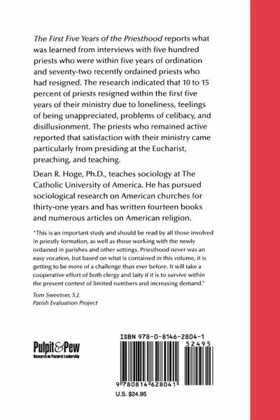 The First Five Years of the Priesthood reports what was learned from interviews with five hundred priests who were within five years of ordination and seventy-two recently ordained priests who had resigned. The research indicated that 10 to 15 percent of priests resigned within the first five years of their ministry due to loneliness, feelings of being unappreciated, problems of celibacy, and disillusionment. The priests who remained active reported that satisfaction with their ministry came particularly from presiding at the Eucharist, preaching, and teaching.