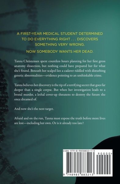 A first-year medical student determined to do everything right . . . discovers something very wrong. Now somebody wants her dead. Tanna Christensen spent countless hours planning for her first gross anatomy dissection, but nothing could have prepared her for what she's found. Beneath her scalpel lies a cadaver riddled with disturbing genetic abnormalities-evidence pointing to an unthinkable crime. Tanna believes her discovery is the tip of a terrifying secret that goes far deeper than a single corpse. But when her investigation leads to a brutal murder, a lethal cover-up threatens to destroy the future she once dreamed of. And now she's the next target. Afraid and on the run, Tanna must expose the truth before more lives are lost-including her own. Or is it already too late?