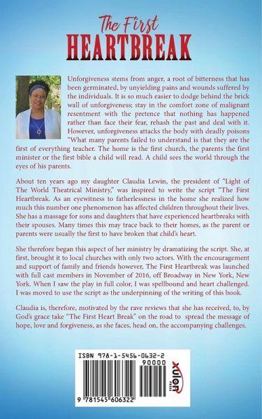 Unforgiveness stems from anger, a root of bitterness that has been germinated, by unyielding pains and wounds suffered by the individuals. It is so much easier to dodge behind the brick wall of unforgiveness; stay in the comfort zone of malignant resentment with the pretence that nothing has happened rather than face their fear, rehash the past and deal with it. However, unforgiveness attacks the body with deadly poisons "What many parents failed to understand is that they are the first of everything teacher. The home is the first church, the parents the first minister or the first bible a child will read. A child sees the world through the eyes of his parents. About ten years ago my daughter Claudia Lewin, the president of "Light of The World Theatrical Ministry," was inspired to write the script "The First Heartbreak. As an eyewitness to fatherlessness in the home she realized how much this number one phenomenon has affected children throughout their lives. She has a massage for sons and daughters that have experienced heartbreaks with their spouses. Many times this may trace back to their homes, as the parent or parents were usually the first to have broken that child's heart. She therefore began this aspect of her ministry by dramatizing the script. She, at first, brought it to local churches with only two actors. With the encouragement and support of family and friends however, The First Heartbreak was launched with full cast members in November of 2016, off Broadway in New York, New York. When I saw the play in full color, I was spellbound and heart challenged. I was moved to use the script as the underpinning of the writing of this book. Claudia is, therefore, motivated by the rave reviews that she has received, to, by God's grace take "The First Heart Break" on the road to spread the message of hope, love and forgiveness, as she faces, head on, the accompanying challenges.