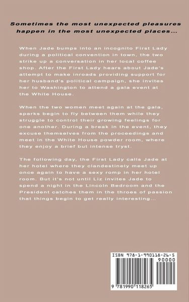 Sometimes the most unexpected pleasures happen in the most unexpected places... When Jade bumps into an incognito First Lady during a political convention in town, the two strike up a conversation in her local coffee shop. After the First Lady hears about Jade's attempt to support her husband's political campaign, she invites her to Washington to attend a gala event at the White House. When the two women meet again at the gala, sparks begin to fly between them while they struggle to control their growing feelings for one another. During a break in the event, they excuse themselves from the proceedings and meet in the White House powder room, where they enjoy a brief but intense tryst. The following day, the First Lady calls Jade at her hotel where they clandestinely meet up once again to have a sexy romp in her hotel room. But it's not until Liz invites Jade to spend a night in the Lincoln Bedroom and the President catches them in the throes of passion that things begin to get really interesting...