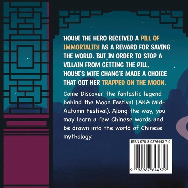 Discover the fantastic legend behind the Moon Festival, also known as the Mid-Autumn Festival. The beautiful illustrations will capture your imagination. A cute kid's book that explains Moon Festival traditions and its origin story. Names of people, places, and traditions shown in Chinese, pinyin, with pronunciation guide. Synopsis: After saving the world, Houyi the hero received a pill of immortality. When a villain went after the pill, Houyi's wife Chang'e made a choice that got her trapped on the moon. Join us for a visit into the world of Chinese mythology, and learn a few Chinese words while we're at it. Makes a great gift for preschoolers, kindergarteners, and elementary school students. A great addition to your school and personal library.