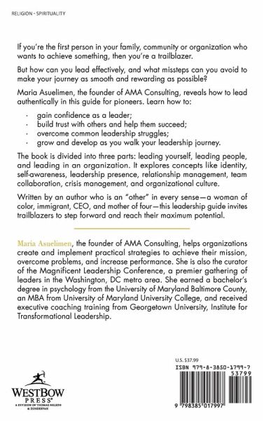 If you're the first person in your family, community or organization who wants to achieve something, then you're a trailblazer. But how can you lead effectively, and what missteps can you avoid to make your journey as smooth and rewarding as possible? Maria Asuelimen, the founder of AMA Consulting, reveals how to lead authentically in this guide for pioneers. Learn how to: · gain confidence as a leader; · build trust with others and help them succeed; · overcome common leadership struggles; · grow and develop as you walk your leadership journey. The book is divided into three parts: leading yourself, leading people, and leading in an organization. It explores concepts like identity, self-awareness, leadership presence, relationship management, team collaboration, crisis management, and organizational culture. Written by an author who is an "other" in every sense-a woman of color, immigrant, CEO, and mother of four-this leadership guide invites trailblazers to step forward and reach their maximum potential.