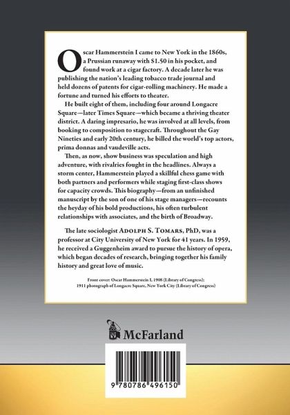 Oscar Hammerstein I came to New York in the 1860s, a Prussian runaway with $1.50 in his pocket, and found work at a cigar factory. A decade later he was publishing the nation's leading tobacco trade journal and held dozens of patents for cigar-rolling machinery. He made a fortune and turned his efforts to theater. He built eight of them, including four around Longacre Square--later Times Square--which became a thriving theater district. A daring impresario, he was involved at all levels, from booking to composition to stagecraft. Throughout the Gay Nineties and early 20th century, he billed the world's top actors, prima donnas and vaudeville acts. Then, as now, show business was speculation and high adventure, with rivalries fought in the headlines. Always a storm center, Hammerstein played a skillful chess game with both partners and performers while staging first-class shows for capacity crowds. This biography--from an unfinished manuscript by the son of one of his stage managers--recounts the heyday of his bold productions, his often turbulent relationships with associates, and the birth of Broadway.