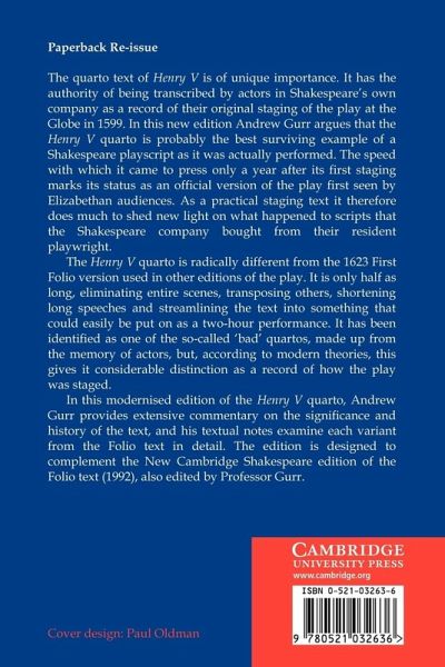 This is the first modernized critical edition of Shakespeare's Henry V in the form of its original staging at the Globe in 1599. Andrew Gurr provides a most extensive commentary on the Quarto text of Shakespeare's last English history.