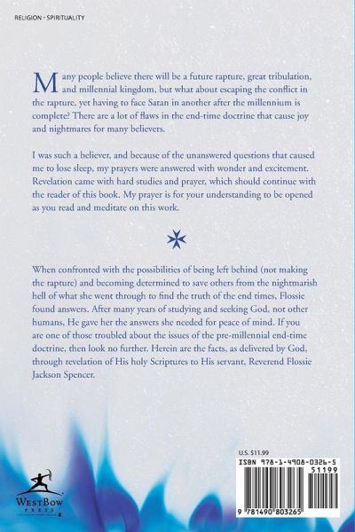Many people believe there will be a future rapture, great tribulation, and millennial kingdom, but what about escaping the conflict in the rapture, yet having to face Satan in another after the millennium is complete? There are a lot of flaws in the end-time doctrine that cause joy and nightmares for many believers. I was such a believer, and because of the unanswered questions that caused me to lose sleep, my prayers were answered with wonder and excitement. Revelation came with hard studies and prayer, which should continue with the reader of this book. My prayer is for your understanding to be opened as you read and meditate on this work.