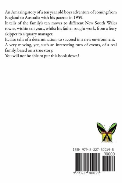 This story follows ten years of a boy's life, who, at the age of ten, in the year 1959, was brought to Australia from England by his parents, who participated in the Assisted Passage Migration Scheme, which was created in 1945 by the 'Chifley Government' and its first Minister for Immigration, Arthur Calwell. The scheme was intended to substantially increase Australia's population and supply workers for the country's booming industries. This story, tells of a family's uncertain migration to a new life in a country they had only read about in brochures issued by the Australian Government. It tells of the many hardships and good times, the family experienced in the transition period of that time. It tells of the family's ten moves to different New South Wales towns within the first ten years. It will take you back to how things were in Australia, in the 1960's It is such an adventure, that, you may not be able to put this book down.
