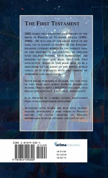 2005 marks the centenary anniversary of the birth in Prague of Vladimir Holan (1905-1980). He was one of the great poets of his time, yet is almost unknown to the English-speaking literary world. In the darkest part of the history of his country, he created such graphic poetry, with expressions and imagery so deep and rich, that the two apocalyptic poems in this book seem to be a precursor to the angst of the whole world today, as it struggles with the turmoil of terrorism and aggression. Never before published in English, the very title of this book must surely intrigue prospective readers. Does it imply a SECOND testament, or is Holan appealing to our individual spirituality? It is preceded by a short, almost nightmarish poem, with rather dismal overtones. Although both works are rich with graphic imagery, portraying a dark period in Prague's history, we catch glimpses of Holan's irrepressible humour, optimism and love of life.