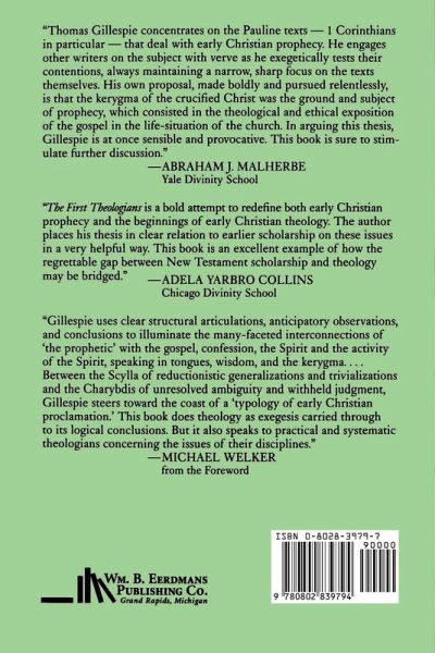 This is a print on demand book and is therefore non- returnable. The First Theologians represents an important contribution to the scholarly investigation of the nature and function of early Christian prophecy. This topic, occasioned by Harnack's publication of The Didache text in 1884, is one that continues to vex New Testament scholars, who have been unable to reach widespread assent on certain pressing questions: What were the function and location of the prophets in early Christianity? What were the nature and authority of their prophesying? What were the forms and content of their prophecy? Such questions point up the issues involved in the inquiry as it has developed, but the question of just what early Christian prophets were doing when they were prophesying remains open. Thomas Gillespie refocuses the issue by looking at the apostle Paul's own description of the prophetic phenomenon in 1 Corinthians. From a careful exegesis of Paul's arguments in chapters 12 and 14 and 2:6-16, Gillespie puts forth the idea that Paul understood Christian prophecy "as Spirit-inspired interpretation of the theological and ethical implications of the apostolic kerygma." Because prophecy represents primary reflection on the implications of the gospel, its yield may be termed theology. Therefore Gillespie is able to call the early Christian prophets the first true theologians of the church.