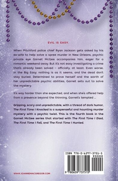 Evil is easy... When Pitchford police chief Ryan Jackson gets asked by his ex-wife to help solve a spree murder in New Orleans, psychic private eye Garnet McGee accompanies him, eager for a romantic weekend away. But it's not easy investigating a crime that's already been solved - officially, at least. Even worse, in the Big Easy, nothing is as it seems, and the dead don't stay buried. Determined to prove herself and the worth of her unpredictable psychic abilities, Garnet sets out to solve the mystery. It's way harder than she expected, and when she's offered help from a presence beyond the thinning, Garnet's tempted ... Gripping, scary and unpredictable, with a thread of dark humor, The First Time I Knocked is a suspenseful and haunting murder mystery with a psychic twist. Great reading for fans of Paula Hawkins, Gillian Flynn, Ruth Ware and Liane Moriarty! This is the fourth book in the Garnet McGee series that started with The First Time I Died, The First Time I Fell, and The First Time I Hunted.