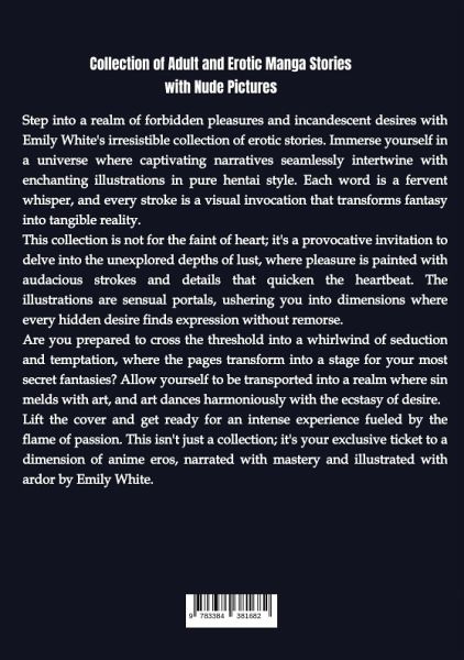 Indulge in an Unforgettable Journey of Passion and Temptation with Emily White's Erotic Masterpiece!Step into a captivating world where seduction knows no bounds in Emily White's latest collection of scintillating erotic stories, enriched with enchanting hentai illustrations. Immerse yourself in a universe where each word is a whispered promise, and every brushstroke is a visual enchantment that brings fantasies to life in pure hentai style.This collection is a daring invitation to explore the uncharted depths of desire, where pleasure unfolds with audacious strokes and details that will quicken your heartbeat. The carefully crafted hentai illustrations serve as sensuous portals, transporting you into dimensions where every hidden fantasy finds unabashed expression.What to Expect:- A Fusion of Literary Mastery and Sensual Artistry- Explicit and Alluring Hentai Illustrations- Stories That Explore the Boundaries of Lust and Fantasy- A Whirlwind of Seduction and TemptationThis isn'tjust a collection; it's your exclusive ticket to a dimension of hentai eros, meticulously narrated and ardently illustrated by Emily White. Lift the cover and prepare for an intense experience fueled by the flame of passion.Caution: This Collection is Not for the Faint of Heart. Are You Ready to Cross the Threshold?