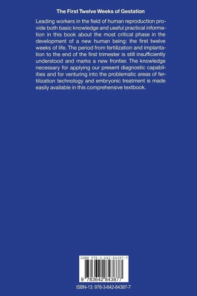 Leading workers in the field of human reproduction provideboth basic knowledge and useful practical information inthis book about the most critical phase in the developmentof a new human being: the first twelve weeks of life. Theperiod from fertilization and implantation to the end of thefirst trimester is still insufficiently understood and marksa new frontier. The knowledge necessary for applying ourpresent diagnostic capabilities and for venturing into theproblematic areas of fertilization technology and embryonictreatment is made easily available in this comprehensivetextbook.The book is…mehr