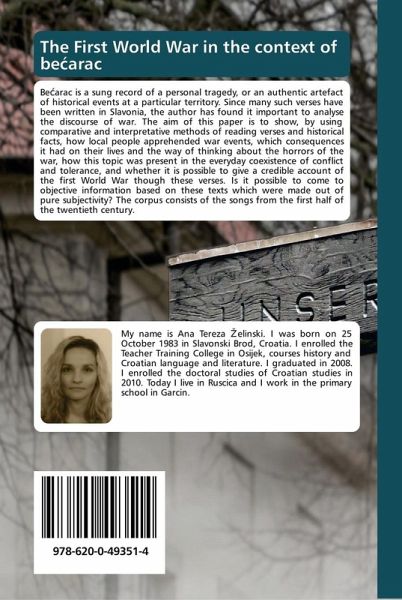 Be¿arac is a sung record of a personal tragedy, or an authentic artefact of historical events at a particular territory. Since many such verses have been written in Slavonia, the author has found it important to analyse the discourse of war. The aim of this paper is to show, by using comparative and interpretative methods of reading verses and historical facts, how local people apprehended war events, which consequences it had on their lives and the way of thinking about the horrors of the war, how this topic was present in the everyday coexistence of conflict and tolerance, and whether it is possible to give a credible account of the first World War though these verses. Is it possible to come to objective information based on these texts which were made out of pure subjectivity? The corpus consists of the songs from the first half of the twentieth century.