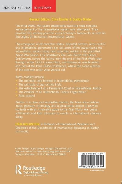 The First World War peace settlements were the most complex rearrangement of the international system ever attempted. The emergence of ethnocentric states, disputed borders, arms control and international governance are just some of the issues facing the international system today that have their origins in the post First World War period. This new Seminar Study covers the period from the end of the First World War through to the 1925 Locarno Pact, and focuses on events which occurred at the Paris Peace Conference, where the broad outlines of the postwar order were worked out. The book also contains maps, a glossary, chronology and documents section to provide students with an invaluable guide to the First World War Peace Settlements and their relevance to events in international relations today.