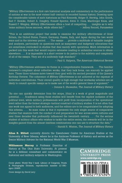 'Military Effectiveness is a first-rate historical analysis and commentary on the performance of nations at war in the most violent half-century in recorded human history. Drawing upon the considerable talents of such historians as Paul Kennedy, Holger H. Herwig, John Gooch, Earl F. Ziemke, Robert A. Doughty, Ronald Spector, Alvin D. Coox, MacGregor Knox, and Russell F. Weigley, Military Effectiveness offers a host of compelling ... insights as to why 'some military forces succeed, while others fail'.' Jeffrey Record, Parameters