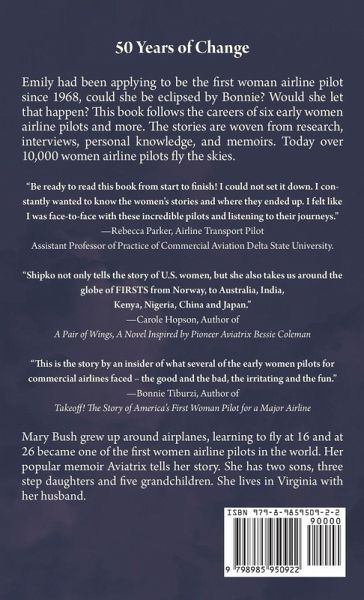 An insiders view of when the airlines started to hire women pilots. Originally banned from the airline cockpit. In 1973, the first woman pilot was finally hired; others followed. In this entertaining and informative story of determination, courage, and heartbreak. We learn about the first permanent woman airline pilot, as well as others, including the first African American woman airline pilot. We learn about the laws and events that moved their quest forward. Read about women pilots from all over the world who were first in their airline's cockpit, perhaps someone from your home country. There is a special chapter about the first African-American, and International women airline pilots. There is an airplane legend for readers, not familiar with the planes flown. The final chapter tells how the industry has changed. Told by one of the women who was there. From research, interviews, personal knowledge, and memoirs, the author presents a simple yet powerful story. Praise for The Firsts: "This book of firsts is a MUST have for any aviation history enthusiast! Women with ordinary names like Emily and Bonnie, did the extraordinary!! They came FIRST and opened opportunities for other women!! Once their uniforms graced the flight deck, but as proof of their trailblazing, now hang in the Smithsonian Air and Space Museum for all to see. Their journeys were not easy, but led to an open door for others. Shipko even talks about the challenges of African-American women pilots and tells us the story of how ISA +21, Zonta, International and Sisters of the Skies were born, out of necessity and have endured, thriving as models of sisterhood and support. Shipko not only tells the story of U.S. women, but she also takes us around the globe of FIRSTS from Norway, to Australia, India, Kenya, Nigeria, China and Japan."Carole Hopson