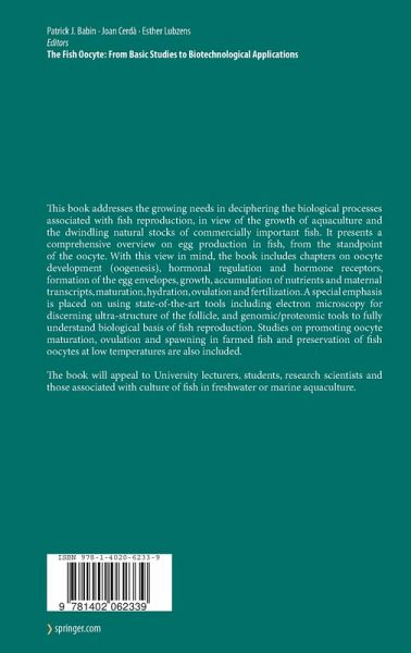 This book addresses the growing needs in deciphering the biological processes associated with fish reproduction, in view of the growth of aquaculture and the dwindling natural stocks of commercially important fish. It presents a comprehensive overview on egg production in fish, from the standpoint of the oocyte. With this view in mind, the book includes chapters on oocyte development (oogenesis), hormonal regulation and hormone receptors, formation of the egg envelopes, growth, accumulation of nutrients and maternal transcripts, maturation, hydration, ovulation and fertilization. A special emphasis is placed on using state-of-the-art tools including electron microscopy for discerning the ultra-structure of the follicle and genomic/proteomic tools to fully understand biological basis of fish reproduction. Studies on promoting oocyte maturation, ovulation and spawning in farmed fish and preservation of fish oocytes at low temperatures are also included.